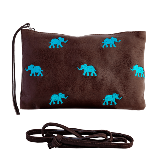 Pochette Vintage – Elephants embroidery – Brown